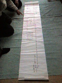 この家系図と一緒に仕込み杖とか寛永通宝(教科書でみたような……)小判とか五十銭硬貨も見せてもらいました。あと変なお金(多分古い中国のお金)